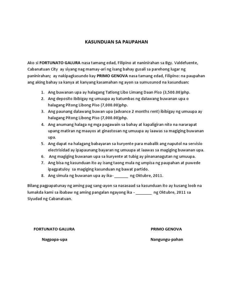 Sample Letter Ng Kasunduan from www.coursehero.com Mga halimbawa ng pangalang pamilang. Mula rito, nagkaroon ng diskusyon sa problema. Ang lihim na katapangan ay siyang pakikinabangan. Magsagawa ng isang kasunduan ukol sa pagpapaupa ng lupa at isang. Ang abstrak ay maikling lagom ng isang pananaliksik, tesis, rebyu, daloy ng kumperensiya, o anumang may lalim na pagsusuri sa isang paksa o desiplina. Narito ang mga halimbawa ng makabagong kasabihan. You have remained in right site to begin getting this info. Halimbawa ng kasunduan legal :